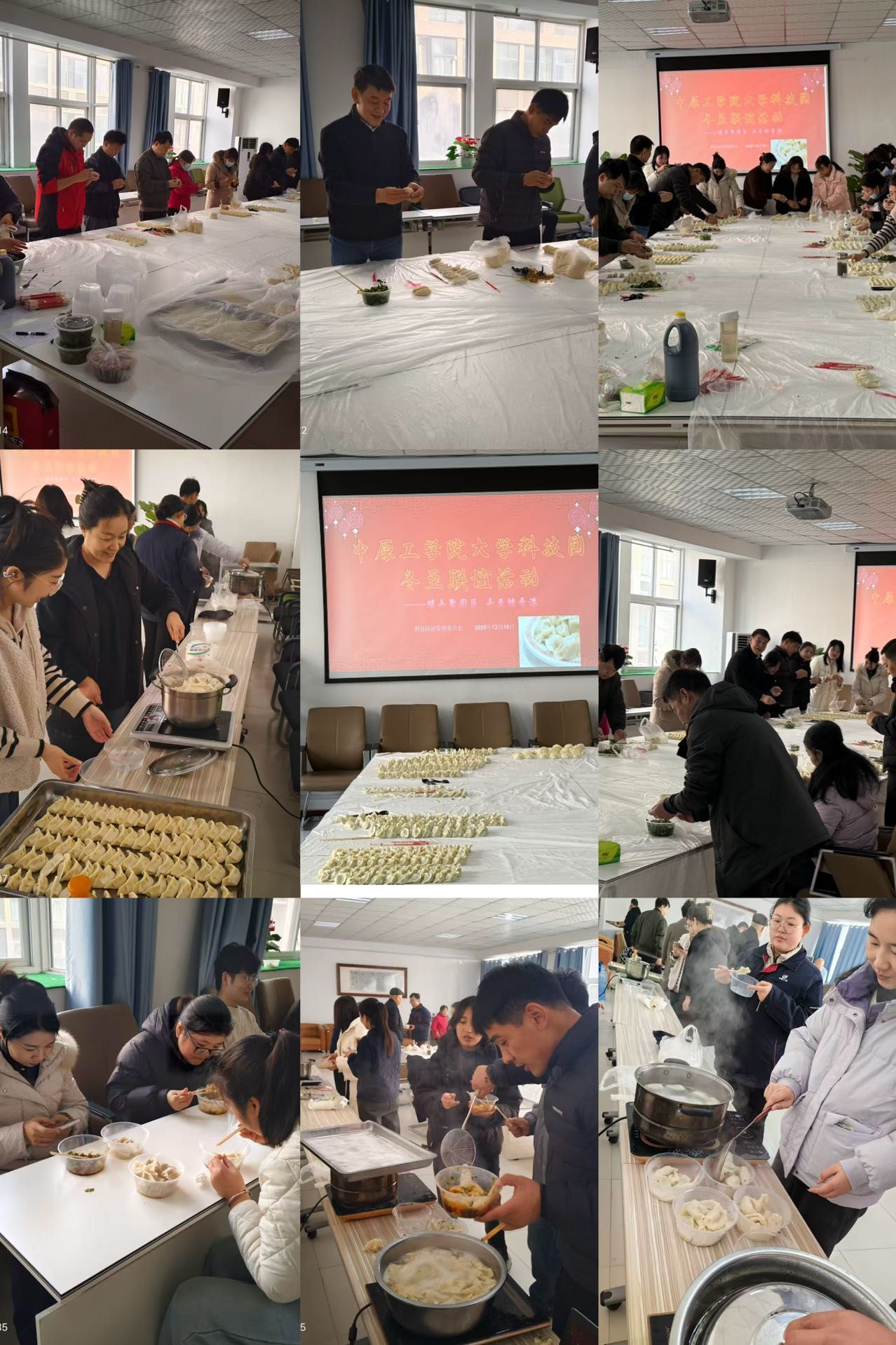 冬至安康,情暖园区。12月19日,中原工学院大学科技园在 6 号楼路演厅举办“暖冬聚园区,冬至饺香浓”企业联谊活动,园区管理团队及在园在孵企业部分员工齐聚一堂,共庆佳节、共话发展。